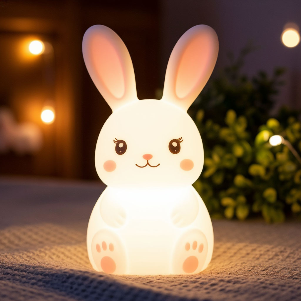 - Parlaklık seviyesi ayarlanabilen silikon tavşan gece lambası