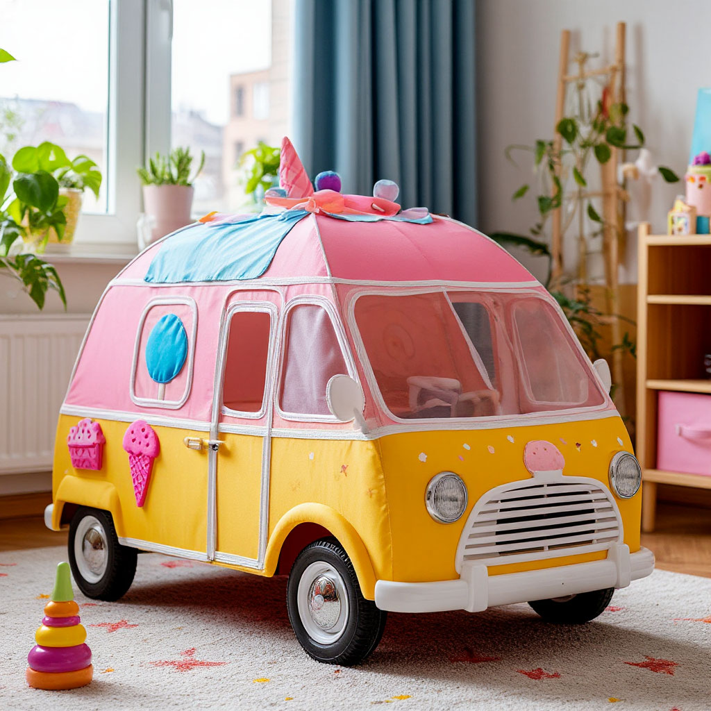 - Kale ya da dondurma arabası şeklindeki kumaş çadırlar benzersiz tasarımlarıyla çocukların hayal gücünü harekete geçirir.
