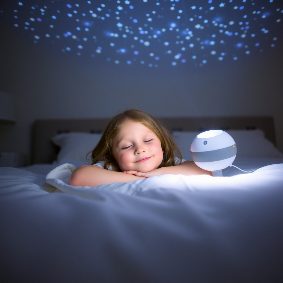 4. Yıldızlarla dolu gökyüzü temalıgece lambası-projektör: Bu harika cihaz, özellikle çocukların uyku öncesi rahatlamalarını destekleyen huzur dolu bir atmosfer yaratır. Gökyüzünü odanın tavanına yansıtabilir, farklı renk ve ışık seçenekleriyle onların hayal dünyasını canlandırmaya katkıda bulunabilir.
