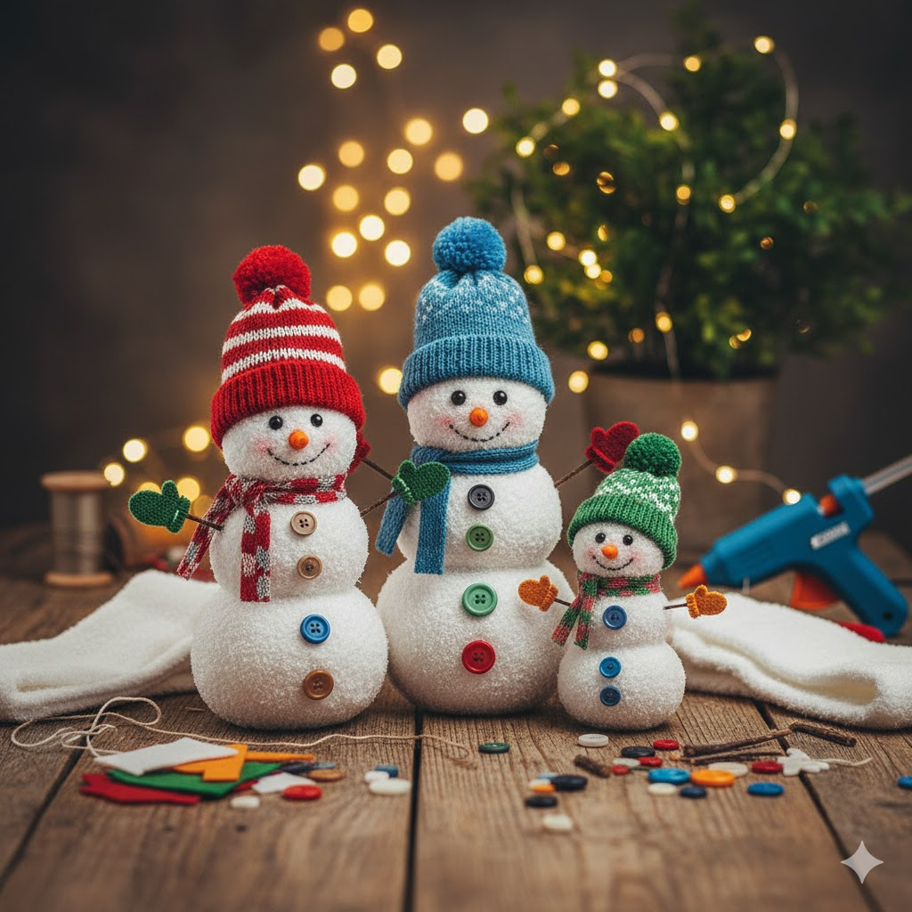 Basit seçenekler: çoraptan kardan adam, makarnadan kar tanesi, kağıt çam ağacı, parmak zinciri. Bu takımlar, güvenli ve her yaş grubundaki çocuklarla yaratıcı faaliyetler için mükemmel.